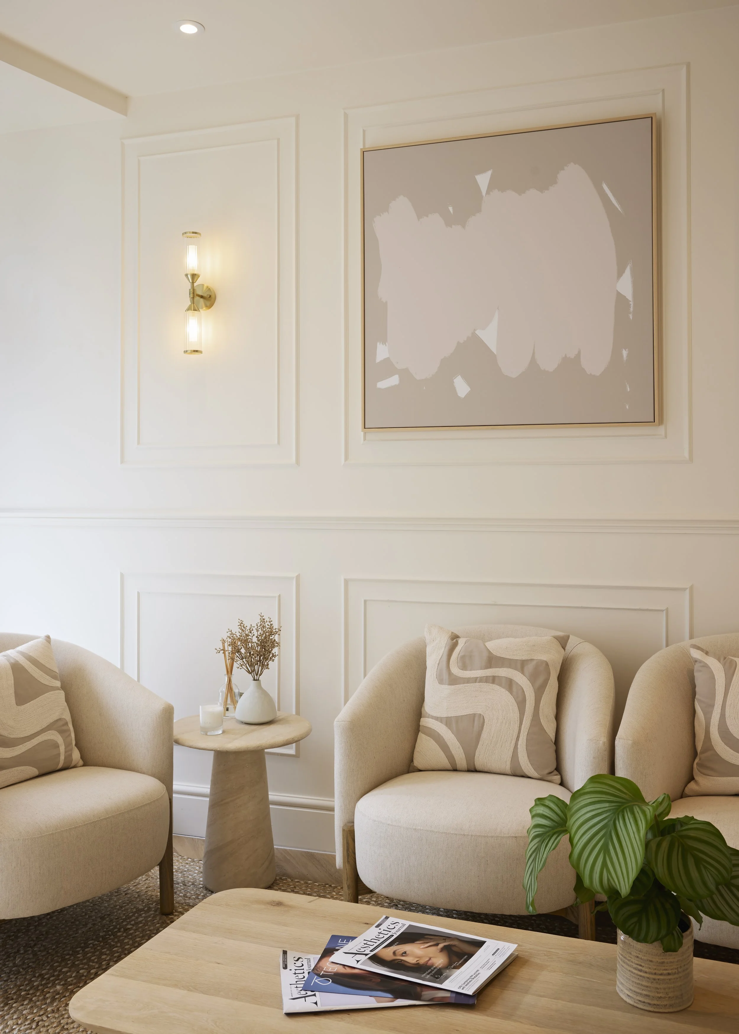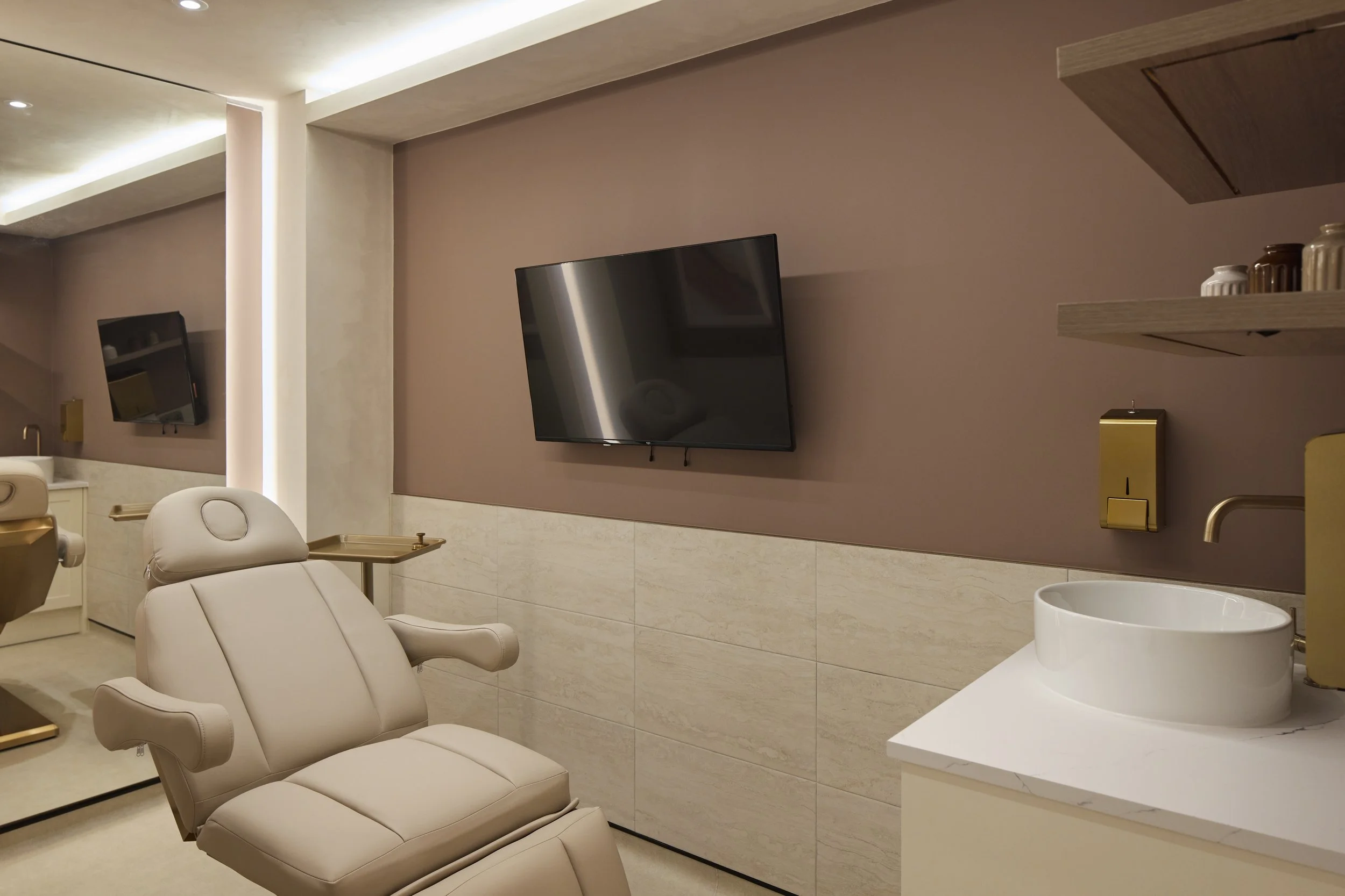 Located in Reigate Surrey this once empty space has been thoughtfully transformed by KTM Design into a calming aesthetics clinic.