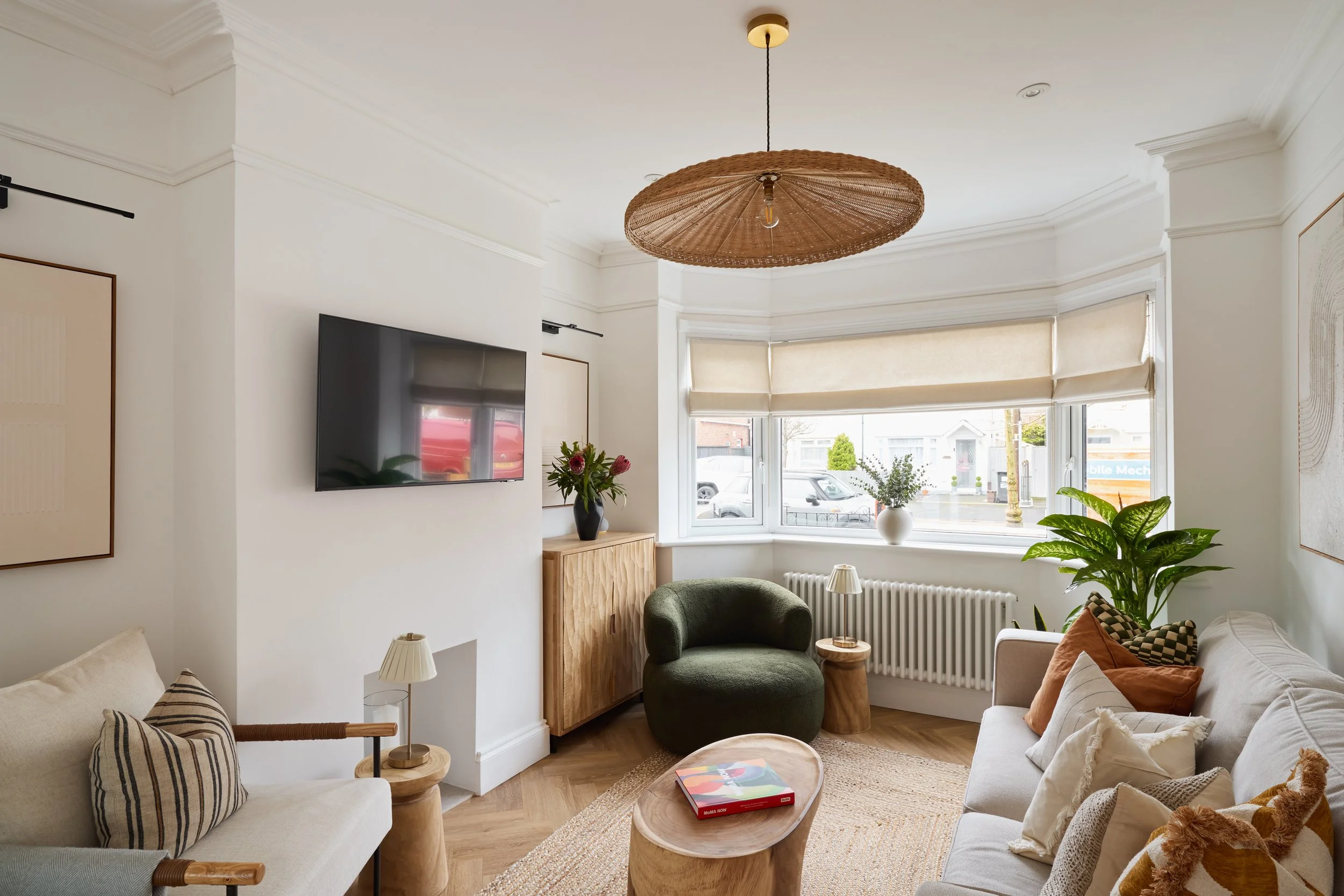 This residential project, located in Bournemouth, is designed with warmth and understated elegance in mind. Soft neutral tones are complemented by natural wood finishes, woven textures and layered lighting to create a balanced and inviting atmosphere.